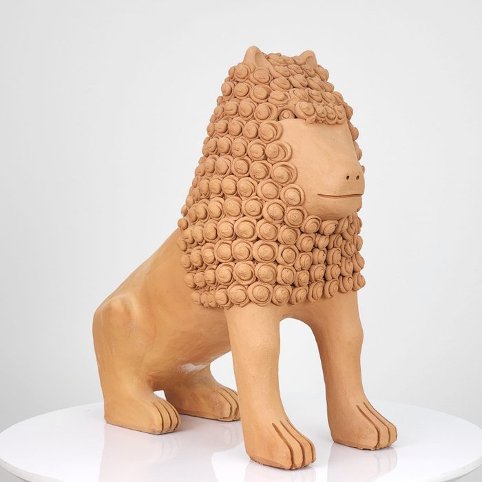 Escultura Leão Cacheado Grande em Barro - Mestre Nuca - 30x40 plantô
