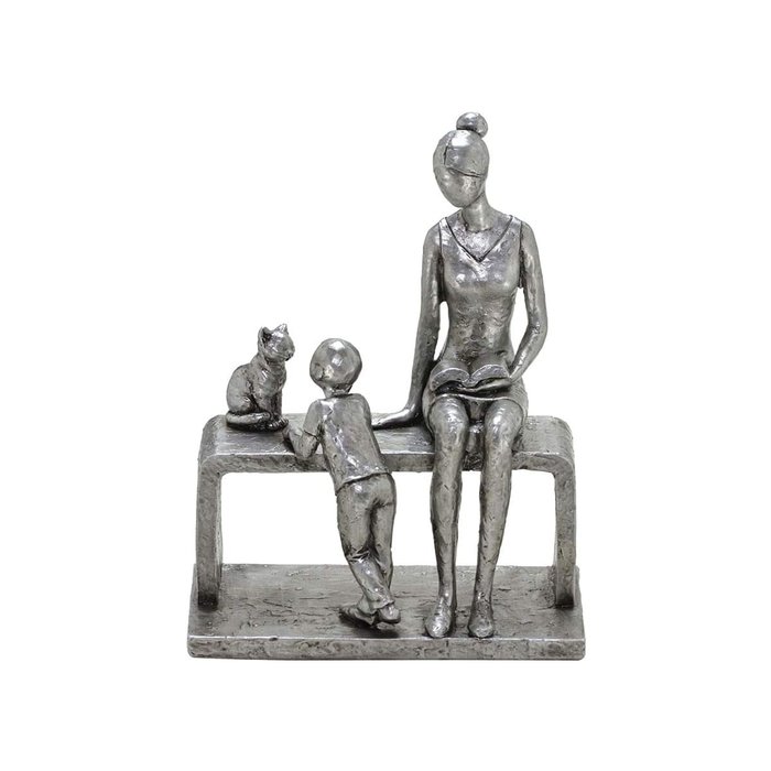 Escultura Mãe Filho e Gato 257-189 Prata Mabruk 12992 Prata