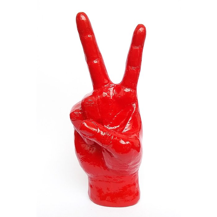 Escultura Mão - Gesto - Paz e Amor, confeccionado em resina poliéster.