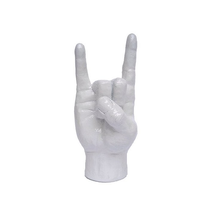 Escultura Mão - Gesto - Rock' Roll, confeccionado em resina poliéster.