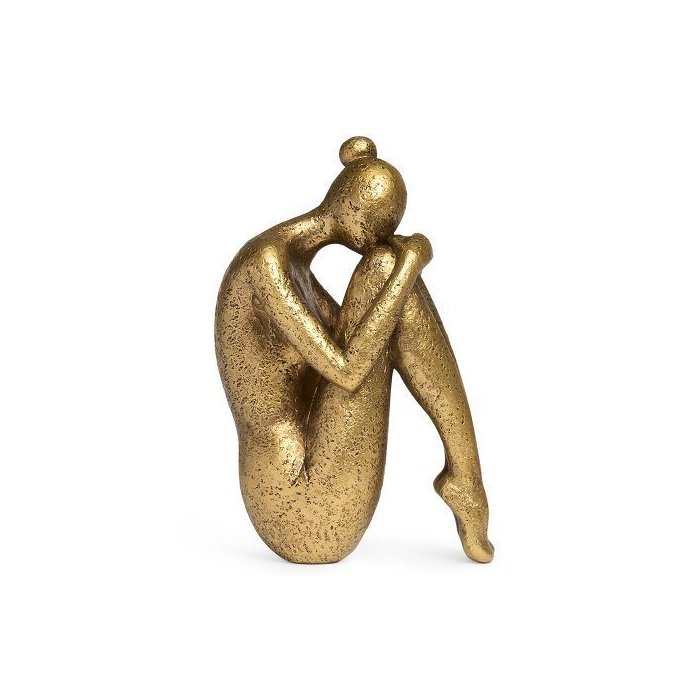 Com linhas suaves e postura introspectiva, esta escultura em tom dourado envelhecido transmite delicadeza e contemplação. Produzida em resina de alta qualidade, é uma peça artística que combina beleza, sofisticação e simbolismo, perfeita para compor ambientes elegantes e cheios de personalidade.