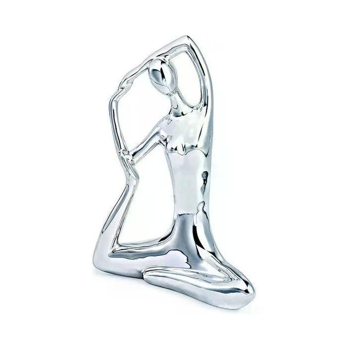 Escultura Mulher Yoga em Porcelana Prata Mart Prata