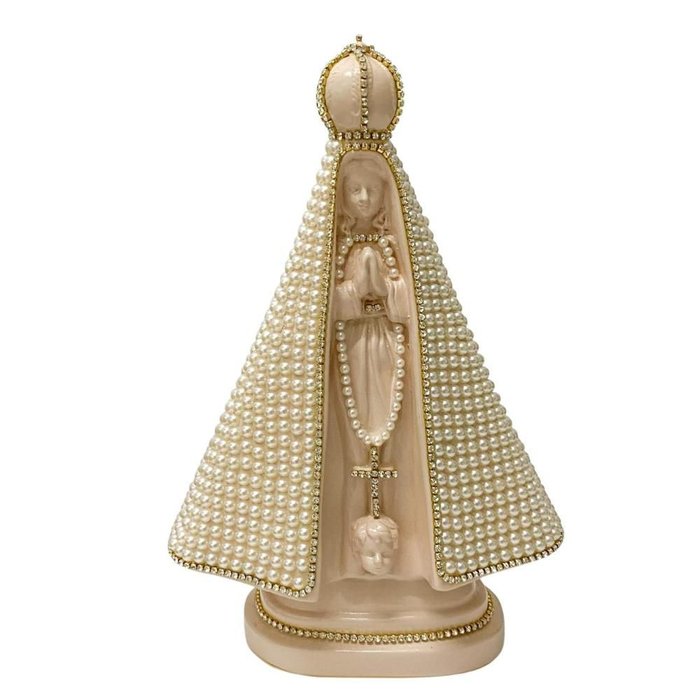 Escultura Nossa Sra Aparecida com Perolas de 28cm