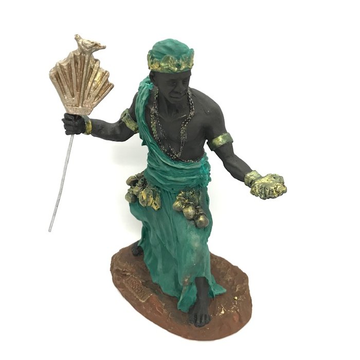 Escultura Orixá Ossaim em Resina 25 cm Ossaim é o orixá da cura e dos milagres, considerado o pai das plantas sagradas e milagrosas. Possui o poder sobre qualquer tipo de vegetação e delas consegue extrair as curas de todos os males. É o defensor da saúde e auxilia todos aqueles que buscam uma vida saudável.Além de servir como decoração, essa linda escultura em resina de alta qualidade, pintura artesanal e acabamento rico em detalhes pode ser um ótimo presente para homenagear pessoas especiais. Especificações técnicas:Material: Resina