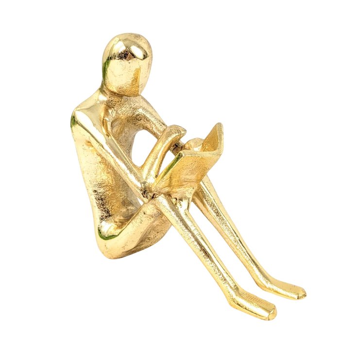 Estátua de Pessoa Sentada Lendo em Alumínio Dourado | Inigual Decor
