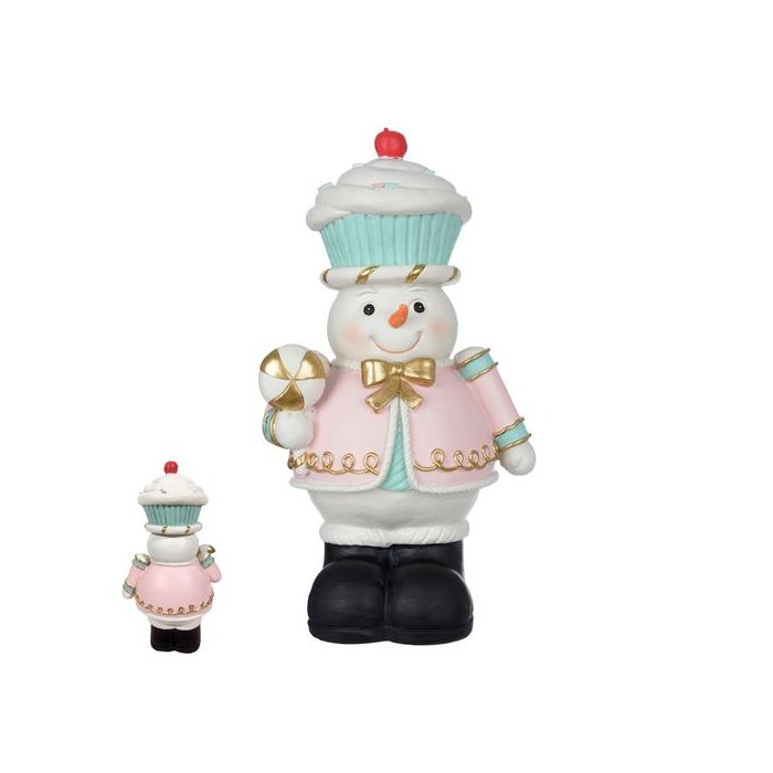 Escultura Resina Boneco de Neve Confeiteiro(azul Rosa) 31cm