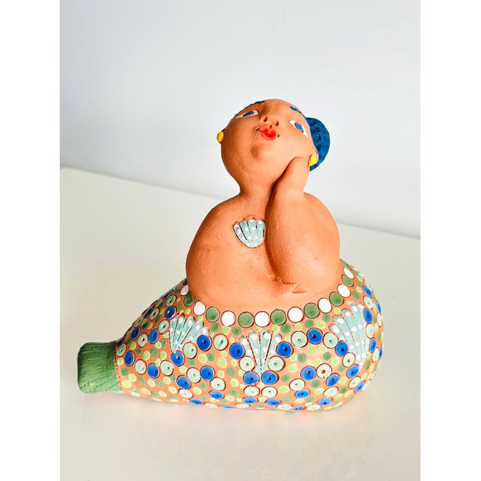 Escultura Sereia em Cerâmica. Jan Araújo. Artesanal da Bahia