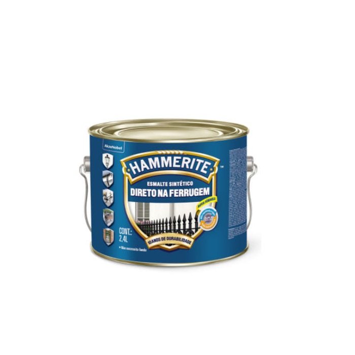 Tinta Esmalte Sintético Hammerite Brilhante Anti Ferrugem Amarelo 2,4ml – CORAL O Esmalte Sintético Hammerite Direto na Ferrugem é um esmalte antioxidante que se aplica diretamente sobre ferro limpo ou enferrujado. Não necessita de fundo prévio. Previne e interrompe o processo de ferrugem. Sua nova fórmula oferece uma Dupla Tecnologia: Alta Repelência a Água e Ação Anticorrosiva, além de permitir a diluição com aguarrás convencional, eliminando a necessidade de diluição com um solvente especifico. Possui um grande poder de cobertura e rendimento. Indicado para ambientes externos e internos. Aplicação Pincel sobre superfícies pequenas (como grades) e aplicação com rolo sobre superfícies grandes (como portões). Demãos: Pincel ou trincha: 2 a 3 demãos fartas. Rolo de lã/espuma ou pistola 3 a 4 demãos. Intervalo mínimo de 8 horas entre demãos. Diluição Aplicação a pincel: Não Diluir. Aplicação a rolo: Diluir na proporção até 10% com Aguarrás Coral. Aplicação a pistola: Diluir na proporção até 20% com Aguarrás Coral Acabamento: Brilhante Secagem Ao toque: 1h a 2 hrs Entre demãos: 8hrs Final: 18 hrs Sobre ferrugem Não é necessário eliminar ou remover a oxidação fixada. Basta lixar a superfície para eliminação das partículas soltas. Repintura Lixar a superfície até remoção completa do brilho e partes soltas, lavar com água e sabão ou detergente neutro para eliminar o pó Enxaguar e aguardar secagem. Recomendamos fazer um teste antes em uma pequena área e esperar 1 hora. Se não ocorrer reação (enrugamento da película), realizar a pintura. Se ocorrer, remover a tinta velha e proceder como no caso de metal novo. Metal novo Lixar levemente, se necessário para melhor aderência.