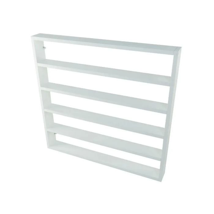 Nicho Organizador Expositor 200 Esmaltes 5 Prateleiras MdfExpositor de esmaltes para pelo menos 200 Esmaltes ou miniaturas, MDF branco 15 mm de espessura.Medidas externas:67 cm de largura x 64 cm altura x 7 cm profundidade.Medidas internas:05 nichos de 64 cm de largura x 10,5 cm altura x 7 cm profundidade.O Nicho organizador serve para expor de forma organizada seus esmaltes e até mesmo para guardar suas miniaturas. Pode ser utilizado em salões de beleza, esmaltarias, perfumarias, lojas, quartos, banheiros, salas, ou onde mais sua imaginação permitir.Fácil de instalar, Acabamento melamínico resistente, Acompanha suporte de fixação, parafusos e buchas para instalação.Para evitar danos no transporte, estamos enviando desmontado. Montagem fácil.Os esmaltes não acompanham o produto.
