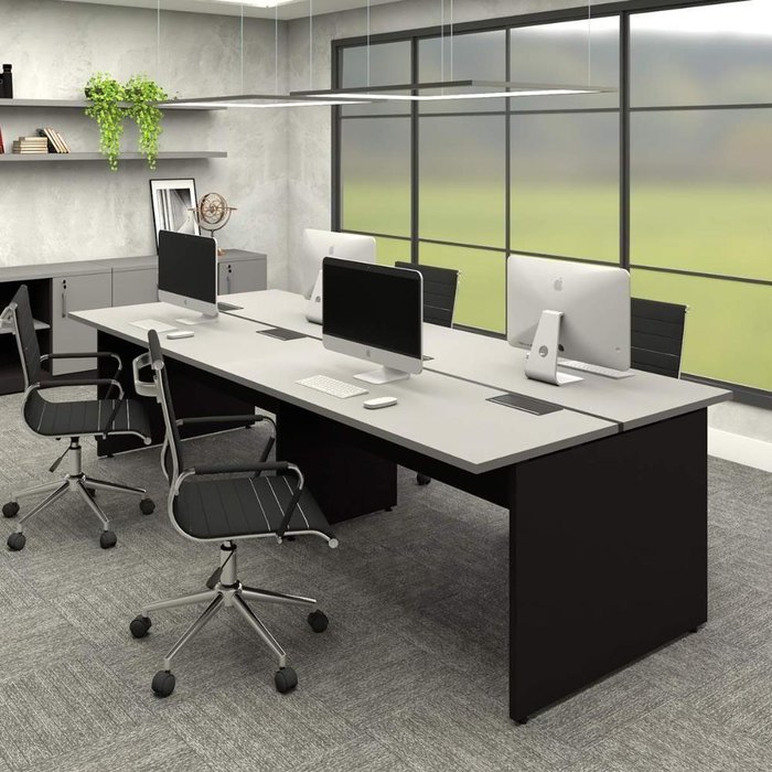Espaço de Trabalho Escritório 4 Pessoas 2,70m Cs Pre Cinza Sagrado com Preto