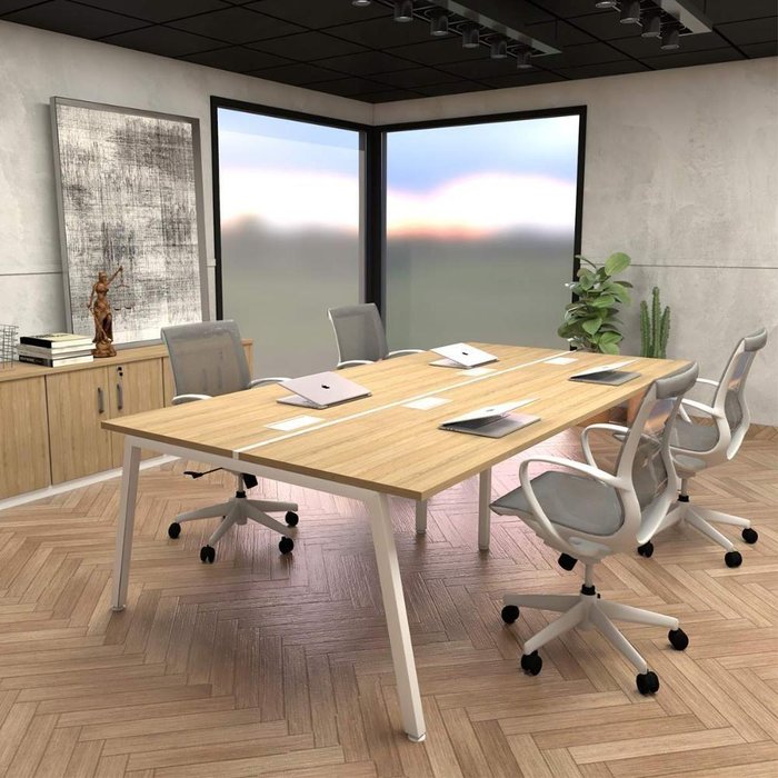 Espaço de Trabalho Mesa 4 Pessoas 2,80m Mbr Pé Cavalete F5 Macadâmia com Branco