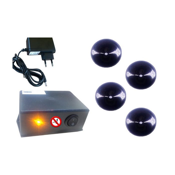 Este Kit contém 4 emissores ultrassônicos, e abrange até 800m2 em área livre.