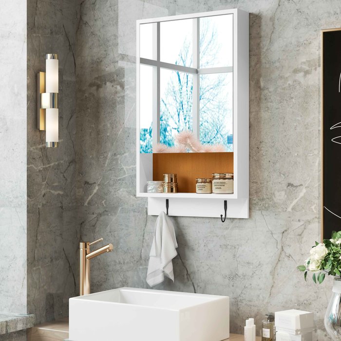 Extremamente funcional, ela possui uma porta com uma prateleira interna criando 1 nicho com amplo espaço interno, neles você poderá guardar todos os produtos de higiene pessoal que deseja, perfumes, dentre muito outros artigos de beleza que deseje armazenar na espelheira.