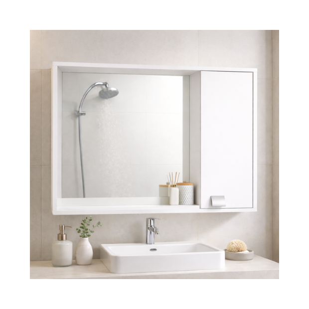 Espelheira de banheiro com design moderno e minimalista, ideal para manter o ambiente organizado e elegante. Possui espelho amplo, armário com porta e prateleiras internas, oferecendo praticidade no dia a dia. O acabamento combina facilmente com diversos estilos de banheiro e lavabo. Modelo suspenso, funcional e fácil de instalar.