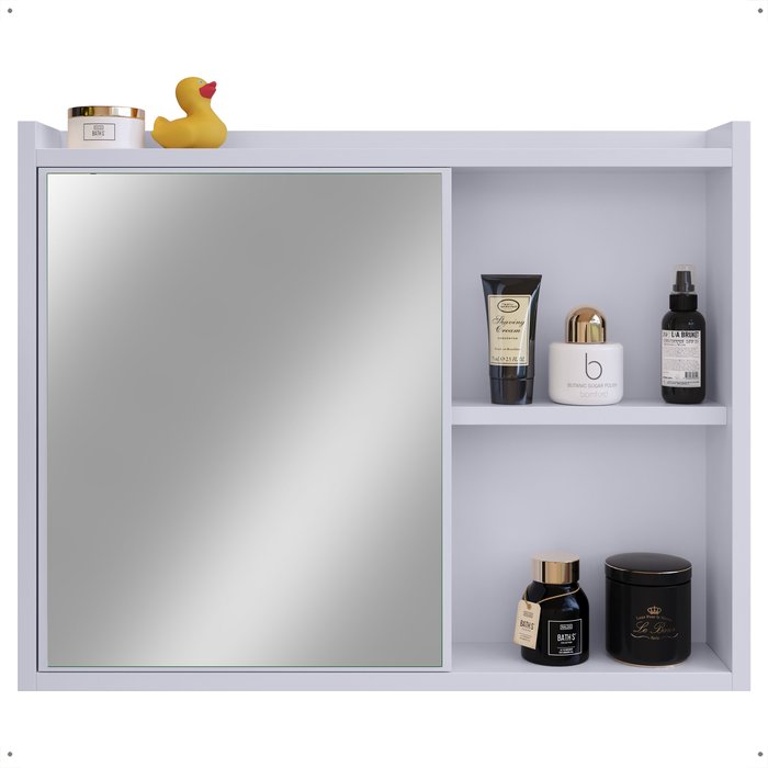 Espelheira Luxo Armarinho Banheiro Pequeno Espelho Porta Escova de Dente Prateleira Organizadora Off White