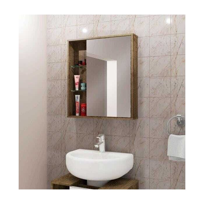 A espelheira Miami é tudo o que seu banheiro precisa! Extremamente funcional, conta com uma porta que internamente possui 3 nichos divididos por 2 prateleiras com amplo espaço, neles você poderá guardar todos os produtos de higiene pessoal que deseja. Possui também duas prateleiras de vidro que formam mais 3 nichos ao lado da porta de espelho que será ideal para acomodar perfumes, shampoos dentre muito outros artigos de beleza que deseje armazenar na espelheira. Acabamento: Pintura Acabamento da Porta: Pintura Acabamento da Prateleira: Pintura Altura: 62,5 cm Ambiente: Banheiro Composição: 100% MDP Cr: Branco Cr: Branco Cr Interna: Branco Cr Predominante: Branco Escala de Brilho: Brilhante Espessura do Espelho: 3 mm Espessura do Material da Estrutura: 12 mm Informações Complementares: Elaborado em mdp com espessura de 12 mm, e acabamento de superfície por pintura brilhante com verniz e secagem UV. Itens Inclusos: 01 Espelheira Miami e 01 Manual de Montagem Largura: 54 cm Material da Porta: MDP Material da Prateleira: MDP Material Principal: MDP Necessita Montagem: Não Peso: 8,55 kg Possui iluminação: Não Possui Portas: 01 Possui Prateleiras: 04 Possui Toalheiro: Não Possui Tomadas: Não Profundidade: 12,5 cm Recomendações de Uso, Manutenção e Limpeza: Recomenda-se limpar o produto com flanela ou pano macio seco, não utilizar produtos abrasivos, desengordurantes, álcool ou solvente. Mantê-lo em lugar livre de umidade e/ou exposição direta ao sol. Tamanho do Espelho (A x L): 59,5cm x 35cm Tipo de Dobradiça/Corrediça da Porta: Metálica Tipo de Porta: Bater