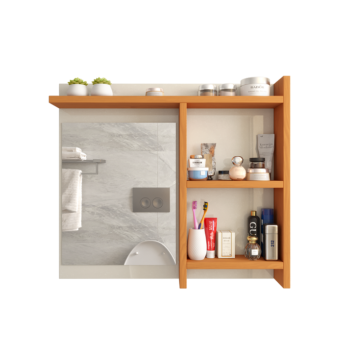 A Espelheira Nioki, mais um lançamento exclusivo da marca AJMóveis, foi desenvolvida visando beleza e praticidade em seu ambiente, além de ser muito linda complementando a decoração do ambiente, conta com nichos ideais para organização de produtos e objetos. Seu desing fixo na parede permite que seja utilizado muito além de apenas no banheiro, mas também pode ser utilizada como mini penteadeira e etc.