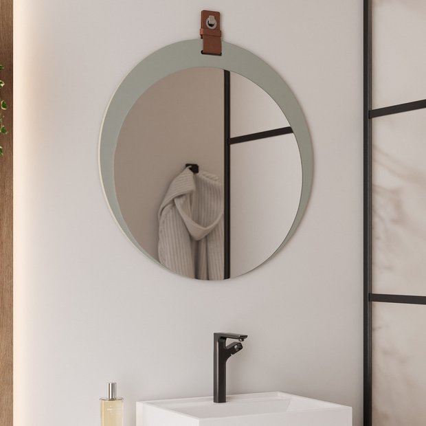 Espelheira Para Banheiro Alça e Couro Lua Espresso Móveis Pistache