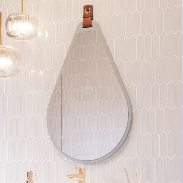 Espelheira Para Banheiro Alça em Couro Gota Espresso Móveis Pistache