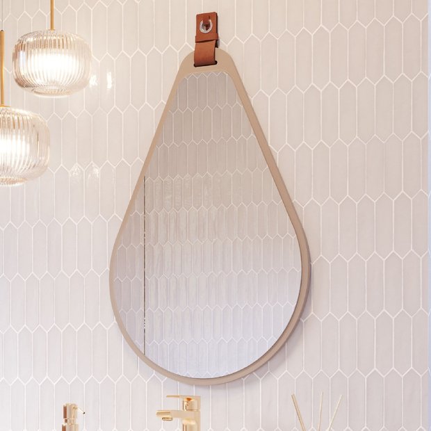 Espelheira Para Banheiro Alça em Couro Gota Espresso Móveis Cappuccino