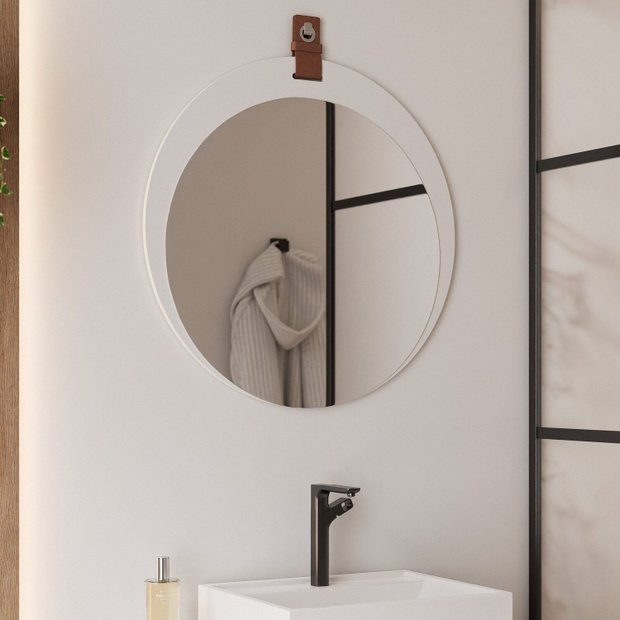 Espelheira para Banheiro Alça em Couro Lua Espresso Móveis Branco