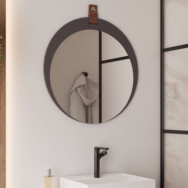 Espelheira Para Banheiro Alça em Couro Lua Espresso Móveis Titanium