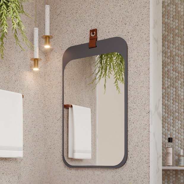 Espelheira Para Banheiro Alça em Couro Monet Espresso Móveis Titanium