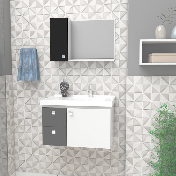 Espelheira para Banheiro em Madeira Moara Branca com Preto - Cozimax