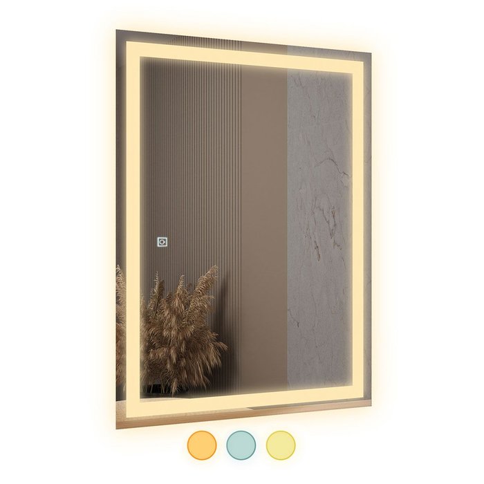 Espelho 3 Cores Led Retangular 80x60 Touch - fino inox