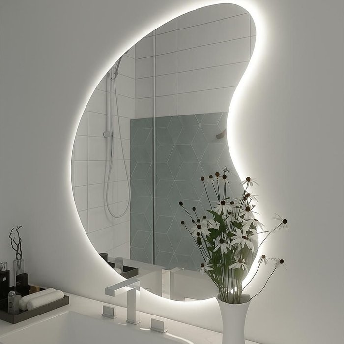 Espelho 60x40 com Led Claro Organico Forma Irregular com Fonte Bivolt Branco