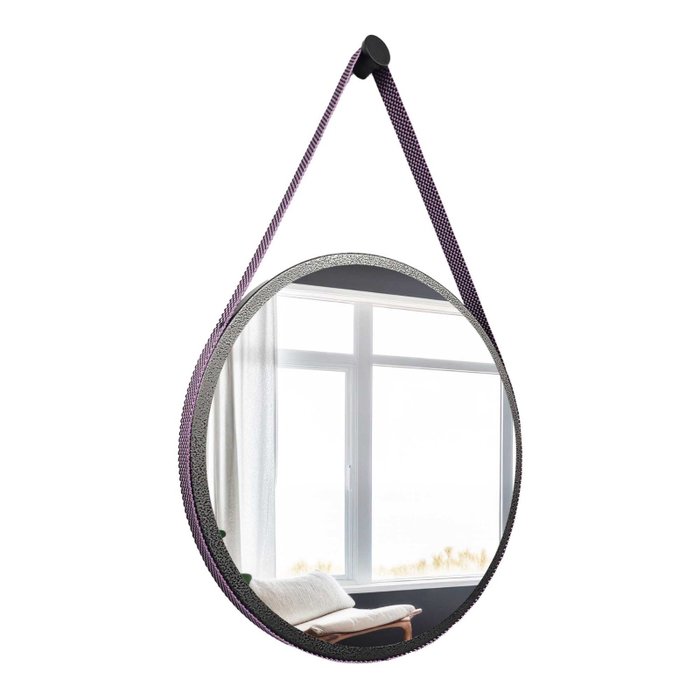 Espelho Adnet Redondo Craqueado 50 Cm + Suporte:lilás Lilás