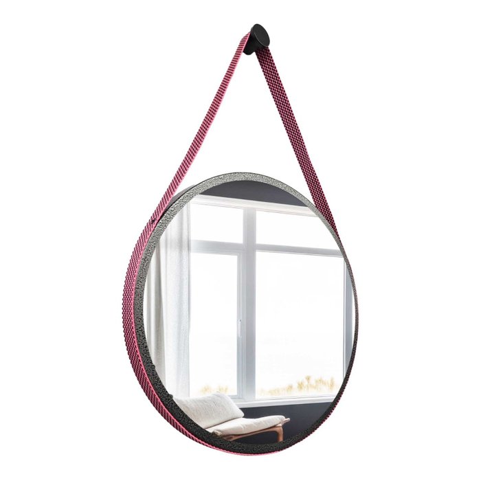 Espelho Adnet Redondo Craqueado 50 Cm + Suporte:rosa Rosa