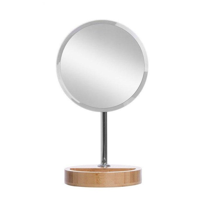 O Espelho Alma Marin possui estrutura feita em bambu e metal que confere resistência e durabilidade. Em sua base comporta pequenos objetos como pinças, batom, cotonete, sendo um item indispensável para os momentos de autocuidado, onde necessitamos de uma visão mais precisa da face. Você pode posicioná-lo da forma que achar mais confortável, seja para barbear, maquiar ou modelar sobrancelhas. Pode ser utilizado na penteadeira, lavabo e aparador.