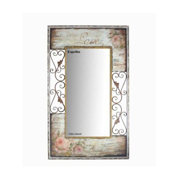Espelho em metal com moldura Arabescos - Love e imagem de Rosas, este modelo de espelho é encantador, com arabescos em metal, com a palavra LOVE - amor e a imagem de rosas traz para ao ambiente beleza e delicadeza pois a rosa é uma das flores mais populares no mundo. Vem sendo cultivada pelo homem desde a antiguidade, a primeira rosa cresceu nos jardins asiáticos há 5 000 anos, existem fósseis que datam aproximadamente 35 milhões de anos, é símbolo dos apaixonados.