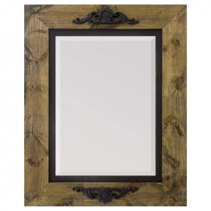 Espelho Bisotado com Moldura Marrom e Preto com Apliques 90x110cm