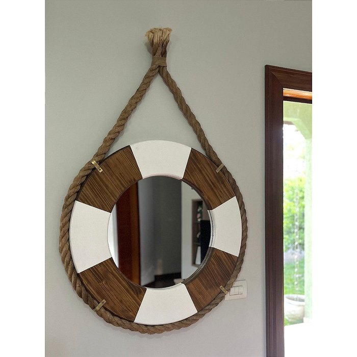 Espelho Bóia em Madeira com Corda Gigante Decoração Náutica Praia