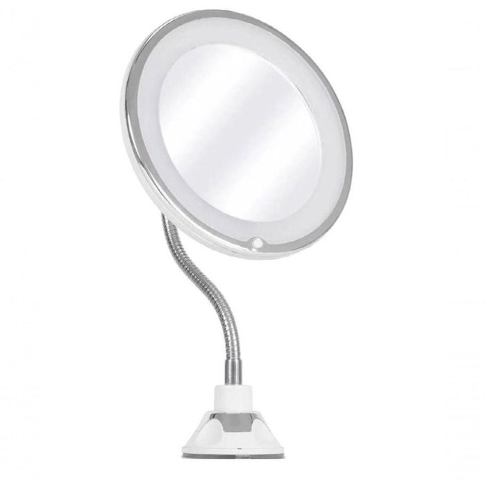 O Espelho de Aumento com Led e Base Flexível, produzido em aço inoxidável, produto de alta qualidade e resistência, com belíssimo acabamento, estrutura flexível, permite maior precisão na hora de barbear, fazer maquiagem, modelar sobrancelhas ou colocar as lentes contato; uma das faces do espelho é convencional e a outra amplia a imagem refletida, possui movimento giratório do espelho em até 360º, que facilita na direção e focalização da área desejada, é sofisticado e elegante.