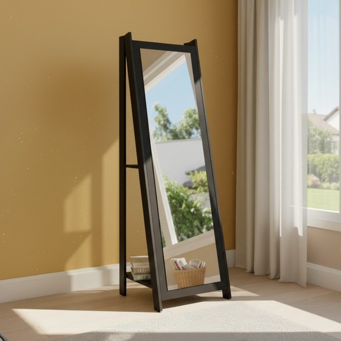 Espelho de Chão com 2 Prateleiras Retrô 161x50cm Movelbento Preto