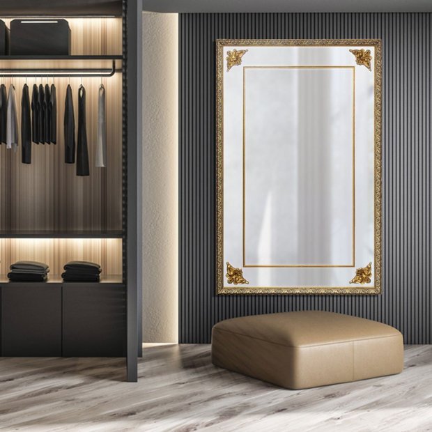 O espelho de chão grande clássico é perfeito para quem está em busca de produtos de alta qualidade e com uma beleza incomparável. Afinal, são produtos feitos com mão de obra artesanal especializada em acabamentos finos e também com materiais de primeira linha. Assim, este modelo de espelho fica perfeito em qualquer ambiente a ser instalado, seja em um closet, sala, hall de entrada, quarto e até mesmo em banheiros. Além disso, você também conta com a sua tonalidade dourada em medidas de 130x200 cm que traz ainda mais imponência à peça. Moldura de alta qualidade, confeccionada em madeira de reflorestamento, trazendo assim, um perfeito acabamento. Apliques de resina nos cantos.