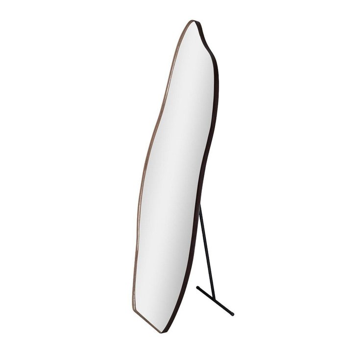 Espelho de Chão Flame Grande 150x50cm Formato Orgânico e Acabamento Sofisticado em Couro Café