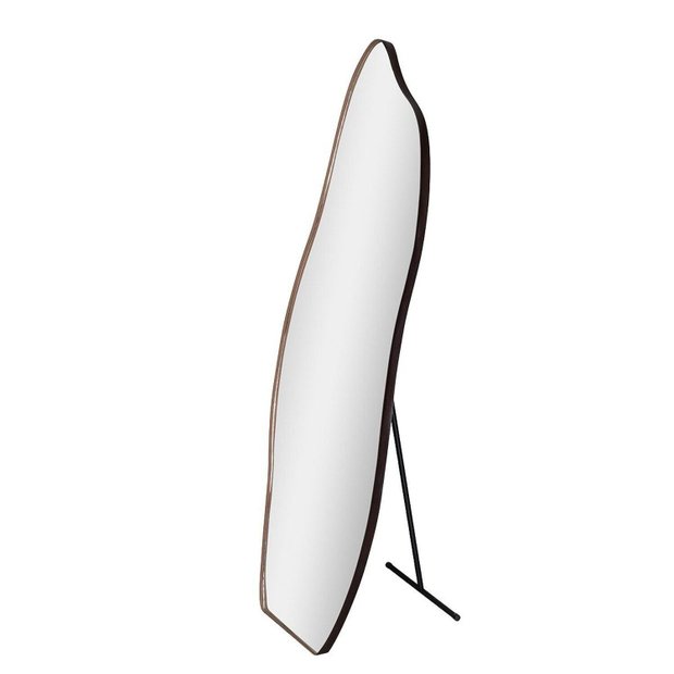 Espelho de Chão Grande 150x50cm Formato Orgânico e Acabamento Sofisticado em Couro Caramelo