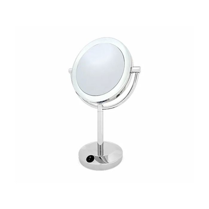 Espelho de Mesa com Iluminação LED Redondo Alto 1x A 8x Cromado