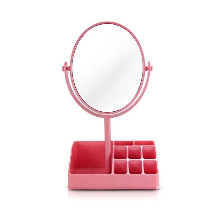 Espelho de Mesa Duplo com Aumento 5x e Divisórias - Rosa