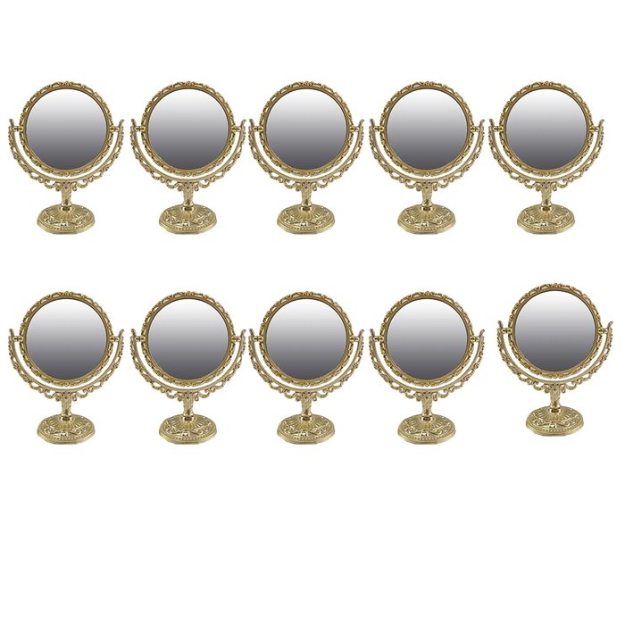 Espelho de Mesa Duplo Giratorio Kit 10 Und Bancada Banheiro Maquiagem Beleza Decoraçao Vintage Dourado Envelhecido