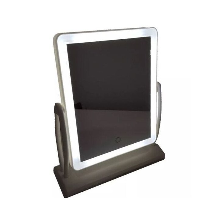 1 Espelho de Mesa para Maquiagem com Luz LED Rotação 360º ! O Espelho de mesa possui ajuste de posição, ele gira 360°. Botão Liga/ Desliga Touch Screen. Ideal para penteadeiras pequenas ou banheiro! Ilumina muito bem! -DIMENSÕES TOTAIS (CM) A 27cm x L 21cm -DIMENSÕES ESPELHO (CM) A 20cm x L 15,5cm -ESPELHO Vidro -ESTRUTURA em plástico refinado duro. As cores da base podem variar de acordo com o lote -CORES Branco -ALIMENTAÇÃO 4 Pilhas AAA (Não inclusas)