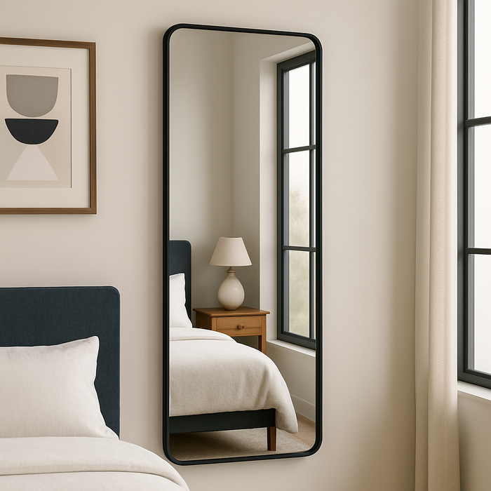Espelho de Parede Retangular Grande 110x50cm Moldura em Alumínio Preto Corpo Inteiro Decorativo Preto