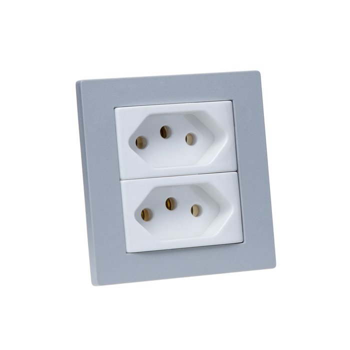 Espelho de Tomada Duplo Reto com 2 Tomadas 20a Cinza