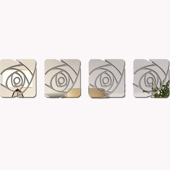 - 01 Conjunto: 4 rosasItens inclusos: - Kit com 4 jogos(rosas) de acrílico espelhado nas medidas de 49 x 49 cm cada