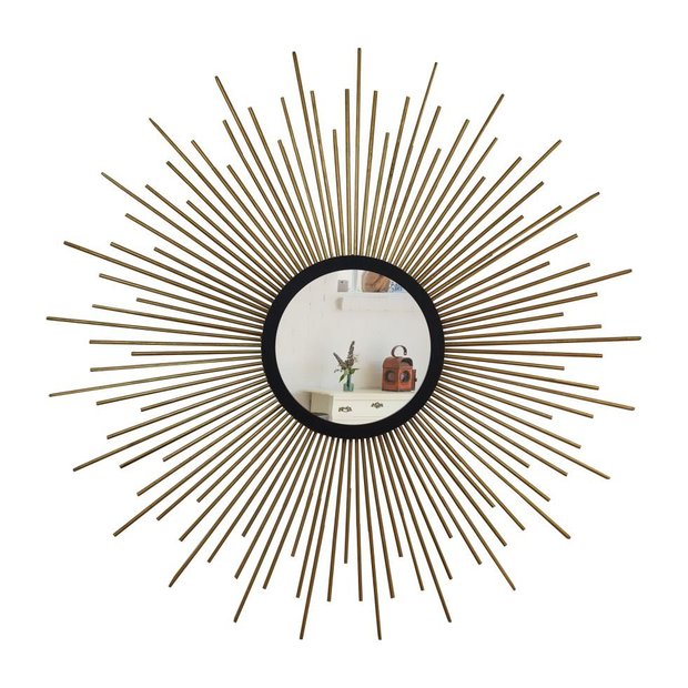 Espelho decorativo de parede redondo com moldura palitada celestial Dourado Dourado, borda preta