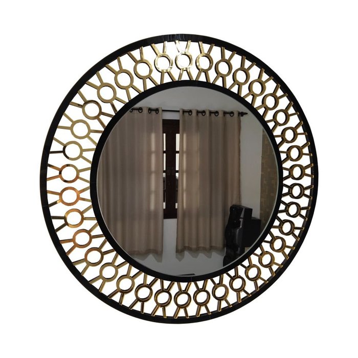 Espelho decorativo de parede redondo com moldura Premium Atenas Dourado Dourado, Bordas pretas